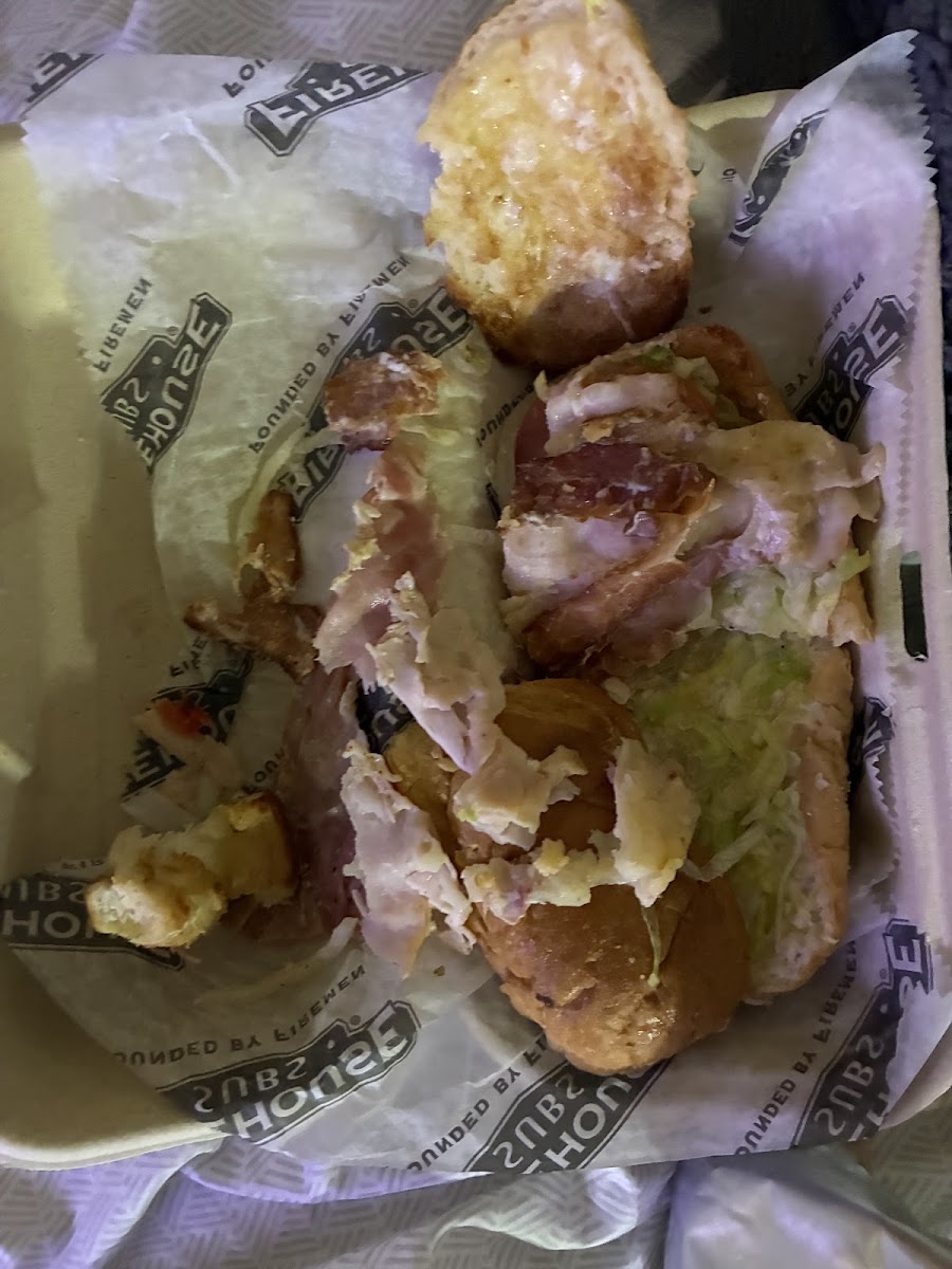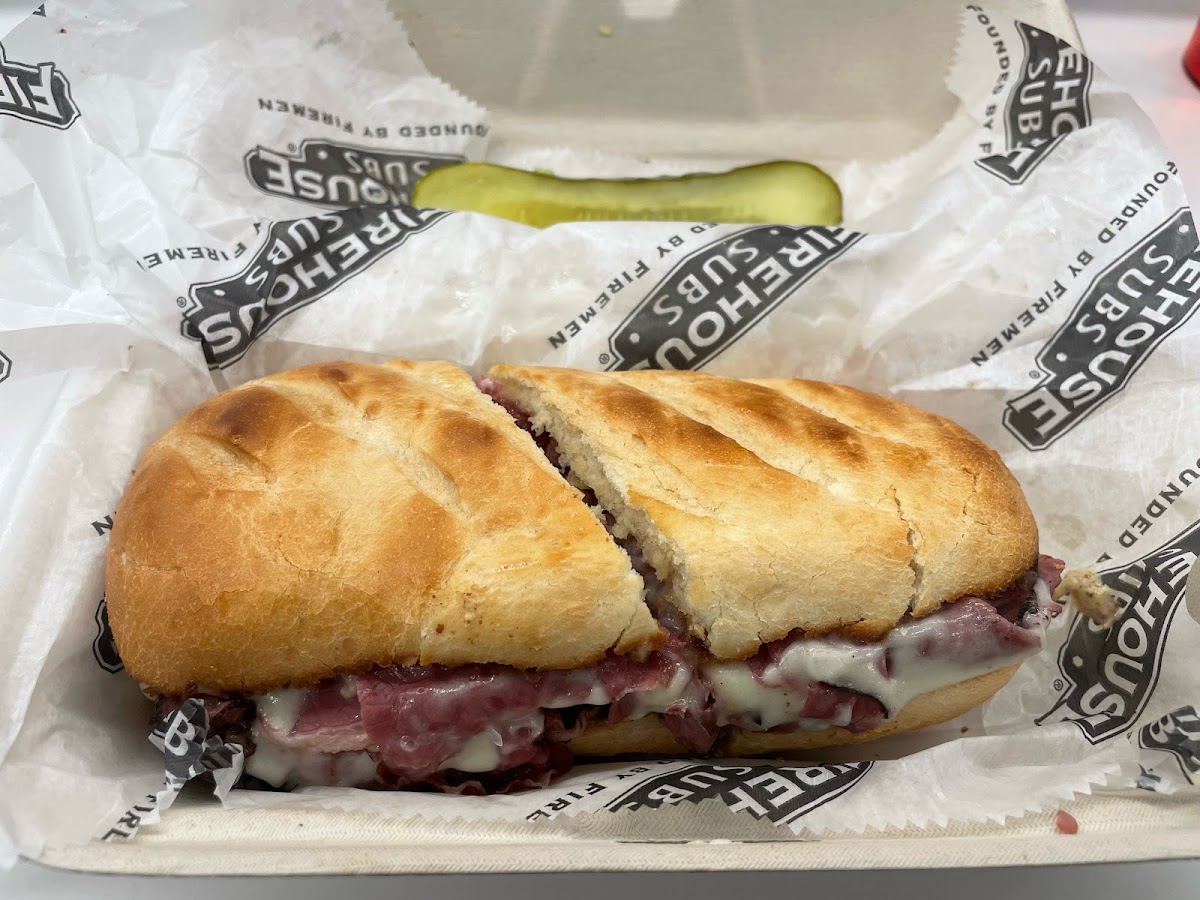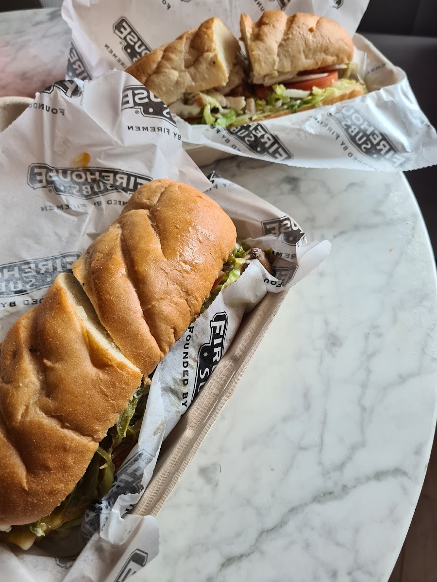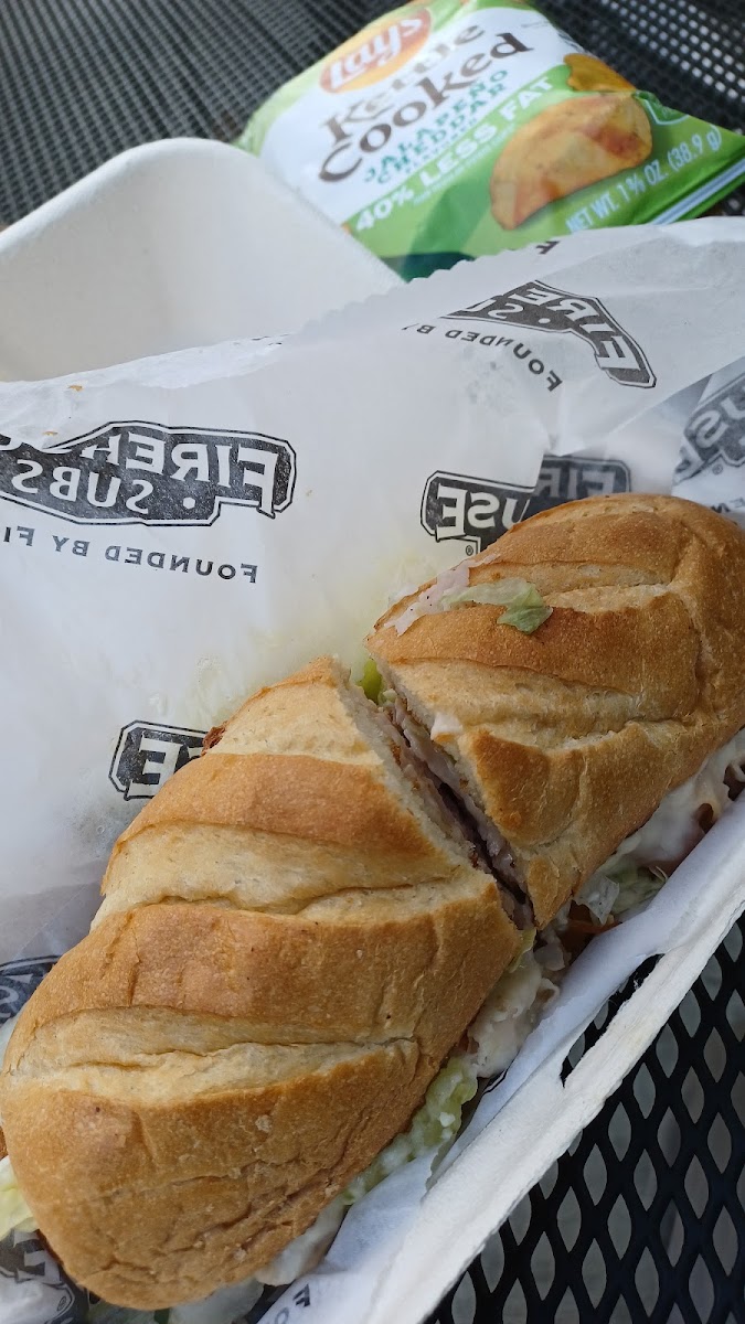 I got a free medium sub for my birthday so I decided to try their new prime rib steak sub. I ordered it online and came in for pick up. The sub was ready and sitting on the rack with my name on it. It was a weekday at lunchtime & the place was full so I recommend ordering ahead of time. The prime rib steak sub was definitely better than the previous subs we tried. There's enough flavor for the sub to be good but for people who love umami, it was too subtle. Maybe if they added more caramelized onions, more of the flavors could have come out. I split the medium sub with my husband which wasn't enough to keep me full so I split a smoothie with him as well. -------- Overall: 4.4/5 (to go pick up) I came in to order in person and it took about 5-10 minutes before I got my sandwich. I ordered the Hook & Ladder on wheat bread then added a drink/chip combo for an additional $2.99. You can choose whichever chip and drink you want and it's self-serve. The Hook & Ladder is the best sandwich I have had here to date. I could taste every ingredient individually, especially the bread & meat which both had a sweetness that stood out. I was chewing slowly to taste all the flavors of the sandwich. The pickle on the side adds a nice acidity as well.