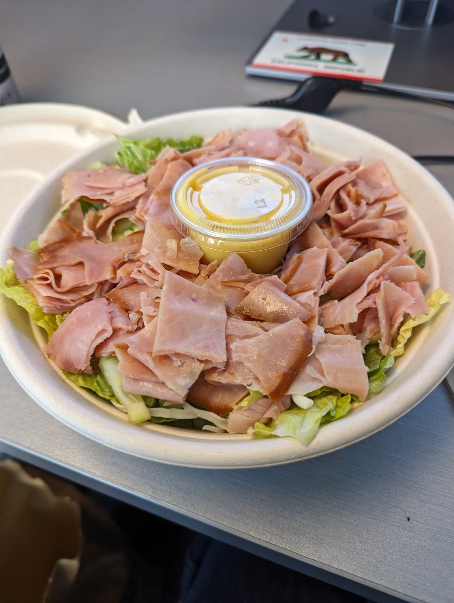 Ordered the Firehouse Salad for lunch on a Tuesday. I was told that they’re missing tomatoes and bell peppers. Not a good sign. I said that it’s fine. Opened up my salad and it was just basically lettuce and cucumbers with topping of ham. Tasted ok with honey mustard but I kinda felt jipped!
